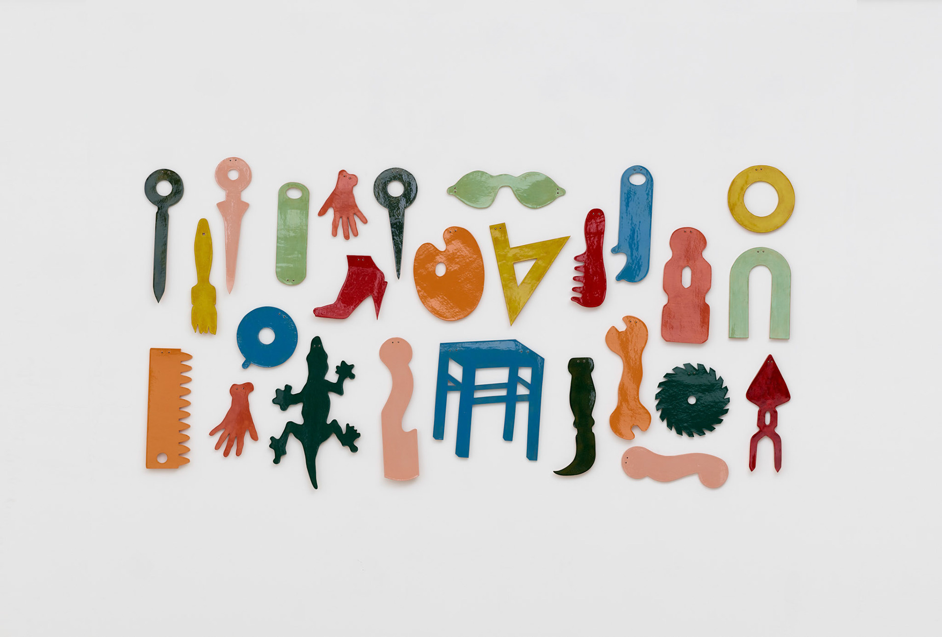 Kiki Kogelnik ! Untitled (Small hanging) 1968 — Sheet vinyl-cutouts and wire on painted wood, Plexiglas — 16 1/2 x 9 x 15 1/2 inches (42 x 23 x 37 cm)